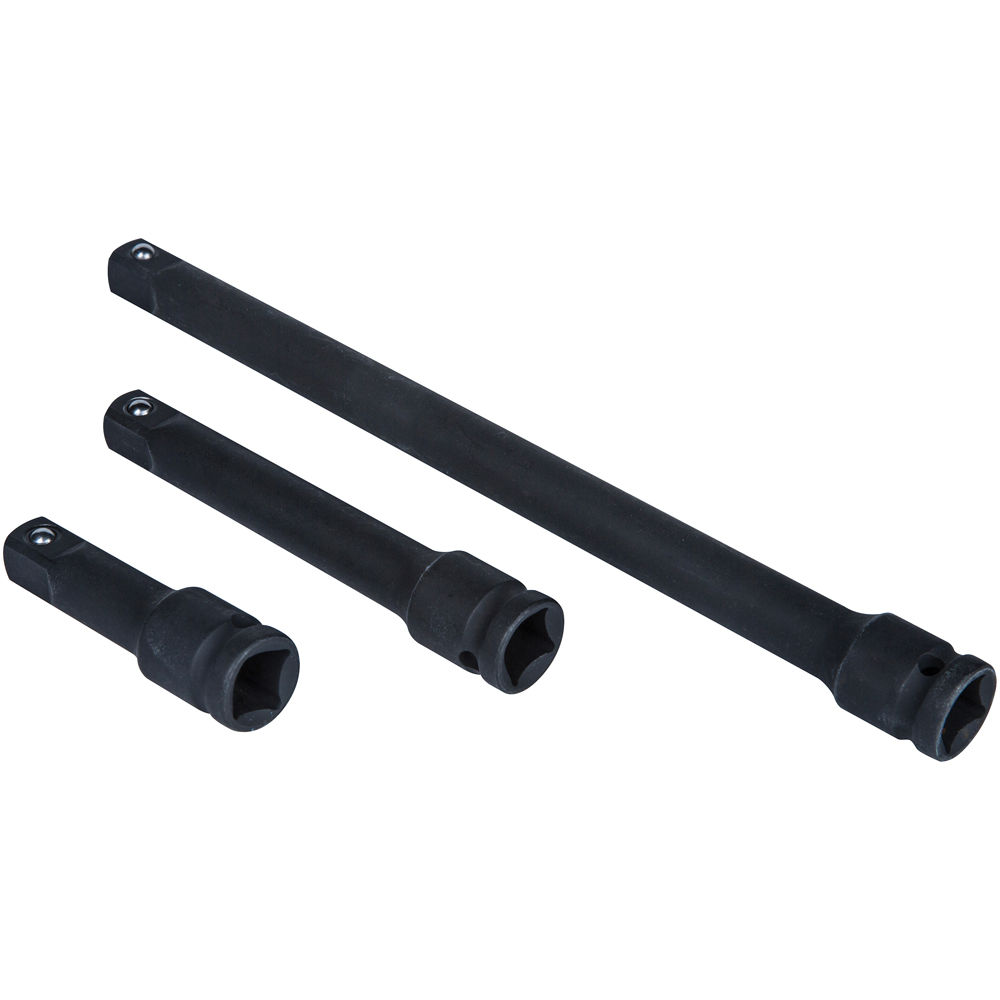 - The BlueSpot 3 Pce 1/2″ Impact Extension Bar Set is drop forged from heat treated Chrome Vanadium Steel with a blackened Phosphate coating to protect from corrosion. The spring – ball socket retainer is secure, and suitable for all types of air impact tools. The set includes 75mm, 125mm and 250mm bars to increase the range and precision of air impact tools. Drop forged from heat treated Chrome Vanadium Steel.