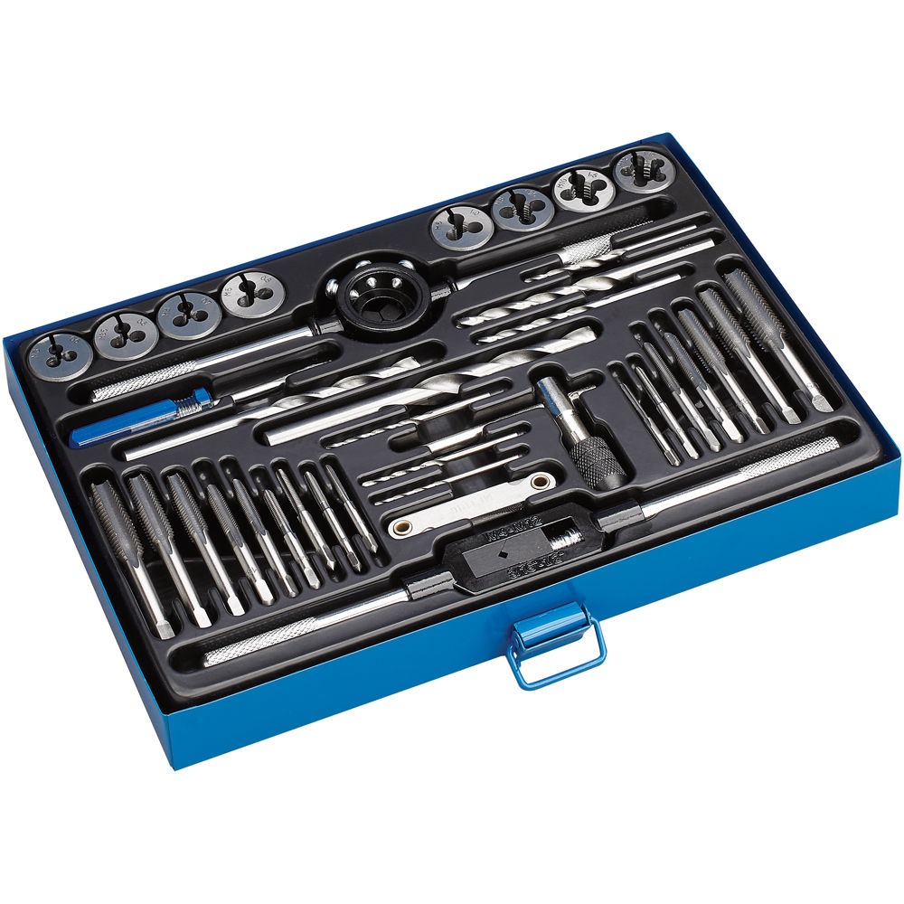37 piece metric & tap and die set in a convenient metal case for general workshop use. Made from high carbon alloy steel.